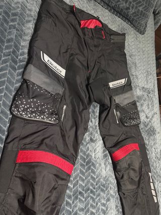 Pantalón de cordura Bela en color negro con detalles en rojo. Diseñado para motoristas. - Talla L. - Material resistente a la abrasión. - Paneles reflectantes para mayor visibilidad. - Bolsillos prácticos. - Ajustes en cintura y tobillos. - Me lo he puesto una vez estan nuevos