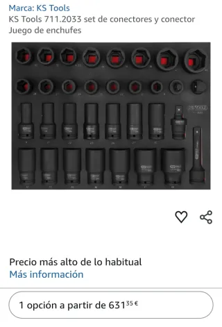 Set de vasos de impacto de 3/4 de la marca KS Tools. Incluye vasos de diferentes medidas. - Medidas métricas: 19, 21, 22, 23, 24, 27, 28, 30, 32, 33, 34, 36, 38, 41, 46 mm. - Fabricados en acero de alta resistencia. Similar: Facom, Bahco, Irimo, Acesa, Berner, Würth, Gedore, Stahlwille, Stanley, Hazet, Usag, Sam,