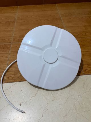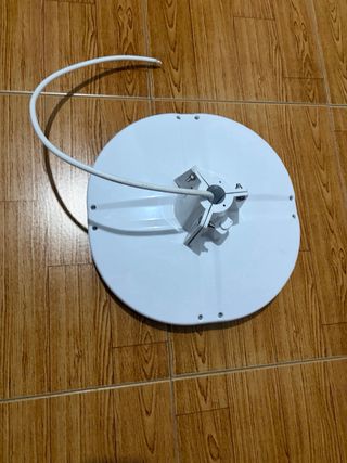 Antena de TV circular blanca, diseñada para su uso en caravanas. Incluye cable de conexión. - Diseño circular y plano. - Color blanco.
