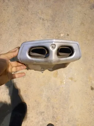 Sistema de escape para motocicletas. - Fabricado en metal plateado. - Diseño con líneas geométricas.