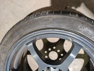 Juego de 4 llantas OZ Ultraleggera de 18", 8J, ET45. Tornillería 5x112 con centradores a 57'1. Entrego también tornillos de seguridad y tornillos. Las llantas presentan algún roce pero ningún golpe importante, tienen 1 año. Diseño deportivo y ligero, con acabado en negro brillante. Compatibles con varios modelos de coche. Neumáticos al 60% como se ve en las fotos, dos Michelin crossclimate en 225/45 R18 con dibujo de todas las estaciones, y dos minerva de verano 225/40 R18.