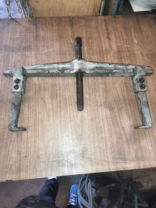 Herramienta de apriete para la reparación o ajuste de sillas. Su diseño permite aplicar presión de forma controlada. - Construcción robusta de metal. - Mecanismo de tornillo con manivela. Fue mojado en la DANA del 2024 pero su funcionamiento está bien aunque habría que hacerle una limpieza