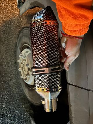 Tubo de escape para motocicleta con acabado en fibra de carbono. - Diseño deportivo y ligero. - Materiales de alta calidad. - Incluye abrazadera de montaje. -DB KILLER