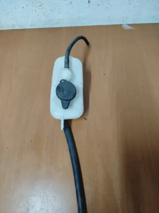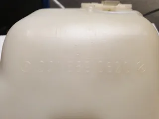 Depósito de líquido limpiaparabrisas para Mercedes W201 190. En buen estado general, aunque el plástico está algo opaco. Tiene agrandado el orificio del sensor de nivel. Referencia 2018690620. Incluye la tapa 1248690072.