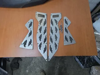 Juego de alfombrillas para Yamaha NMAX 125. - Fabricadas en metal. - Diseño con cortes. - Incluye tornillería para su instalación.