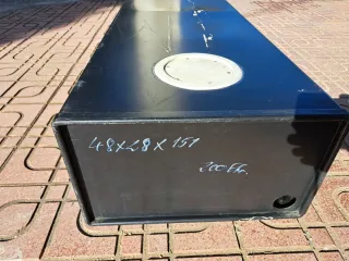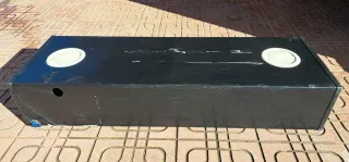 Depósito de agua para caravana, furgoneta camper, etc Fabricado en plástico negro resistente. - Forma rectangular. 48x28x151cm - Dos tapas circulares en la parte superior. - 3 Orificios laterales - Con compartimentos para evitar que se desplace el agua de golpe Estuvo montado en una camioneta Mercedes
