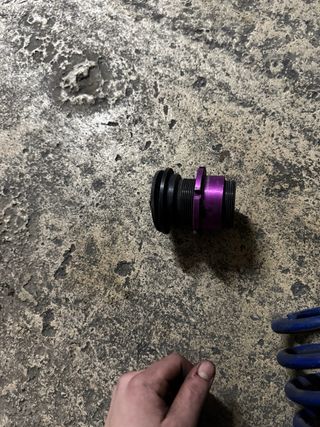 Conjunto de amortiguadores y muelles roscados de color azul. - Dos amortiguadores plateados con detalles negros. - Dos muelles helicoidales de color azul intenso. - Incluye dos roscas Kw golf,mk4,leon,seat,vw,recaro,gti,tdi.....