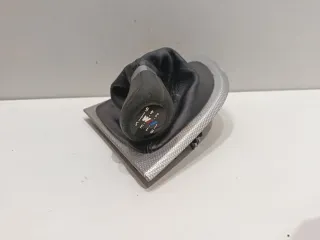 Pomo de cambio M con embellecedor para BMW Serie 1 E87. 🚨 Producto de segunda mano usado tal cual las fotografías - Pomo de cuero negro con detalles M. - Embellecedor plateado con textura.