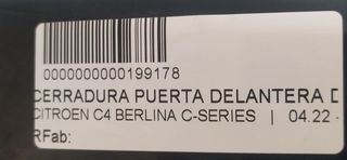 CITROEN C4 BERLINA C-SERIES CERRADURA PUERTA DELANTERA DERECHA