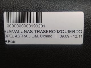 Pieza 199201 - OPEL ASTRA J LIM. Cosmo ELEVALUNAS TRASERO IZQUIERDO. con referencia: A17DTR. . Se puede obtener más información en el sitio web