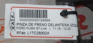 Pieza 199688 - FORD PUMA ST-Line PINZA DE FRENO DELANTERA IZQUIERDA. con referencia: L1TC2B302A B7JF,B7JB. 6T583E. Se puede obtener más información en el sitio web