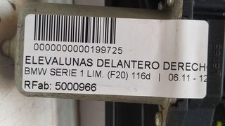 Pieza 199725 - BMW SERIE 1 LIM. (F20) 116d ELEVALUNAS DELANTERO DERECHO. con referencia: 5000966 N47D20C. 5YY0568. Se puede obtener más información en el sitio web