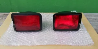 Pilotos para el paragolpes trasero de Volkswagen T4. 2 unidades sin estrenar no originales y 2 unidades usadas originales. Se venden las 4 juntas (no se despieza) Las usadas están impecables. - Pieza de plástico negro. - Lente roja.