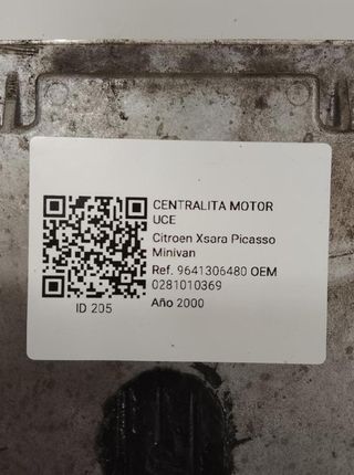 9641306480 Referencia 0281010369. centralita motor uce CITROEN XSARA PICASSO - 1 GENERACION 1999 - 2004 - MINIVAN 2.0 HDI 90 CV Año 1999. Observaciones Unidad de control electronico uce con referencias 0 281 010 369 96 413 064 80 para el motor 2.0 hdi ~90 cv del citroen xsara. compatible con variantes que montan el bloque rhy dw10td y esta familia de centralita bosch edc15c2. Código interno 205.