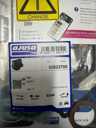 🧰 AJUSA 50523700 – Juego completo de juntas Kit completo para motor 1.4 · 1368cc · gasolina/Gas LPG. Calidad OEM 🇪🇸 con certificación ISO 9001 / TS16949. Incluye juntas completas del motor (sin culata). Perfecto para reparación completa del bloque. 🚗 Compatibilidad confirmada FIAT: • Fiat 500X (334_) – 1.4 LPG (334AXL1B) – 03/2017 – 09/2018 – 1368cc · 120 CV · Gasolina/Gas LPG 📦 Producto nuevo, referencia AJUSA original. 🔎 Revisa la referencia antes de comprar. #Ajusa #50523700 #Fiat #500X #14LPG #120CV #Gasolina #JuntasMotor