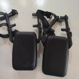 Par de espejos retrovisores universales para coche. Son ideales para añadir visibilidad extra. - Incluye dos espejos. - Montaje con correas ajustables. - Marco de plástico negro.
