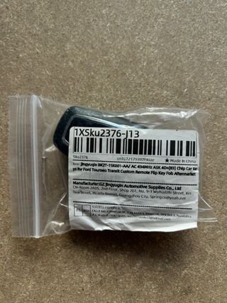 Mando llave tipo flip key abatible compatible con varios modelos Ford. Producto nuevo sin usar Incluye carcasa, electrónica y llave abatible 3 botones: abrir, cerrar y puerta trasera Frecuencia: 434 MHzChip: ASK 4DTipo: mando aftermarket compatible. Compatible con modelos como: Ford Transit Ford Tourneo IMPORTANTE Es mando compatible, no es original Ford. La llave debe ser programada y tallada por cerrajero o especialista. Comprueba que tu mando actual tenga misma forma, botones y frecuencia (434 MHz) antes de comprar. Se vende exactamente lo que aparece en las fotos. Estado: nuevo. Ideal como recambio o segunda llave