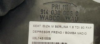 Se vende DEPRESOR FRENO / BOMBA VACIO SEAT IBIZA IV BERLINA 1.6 TDI 90 FAP 03L145100B 2010, Referencia: 03L145100B, ID-185083.