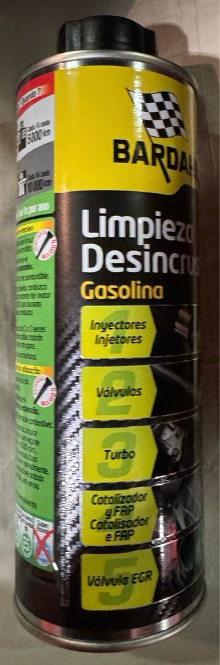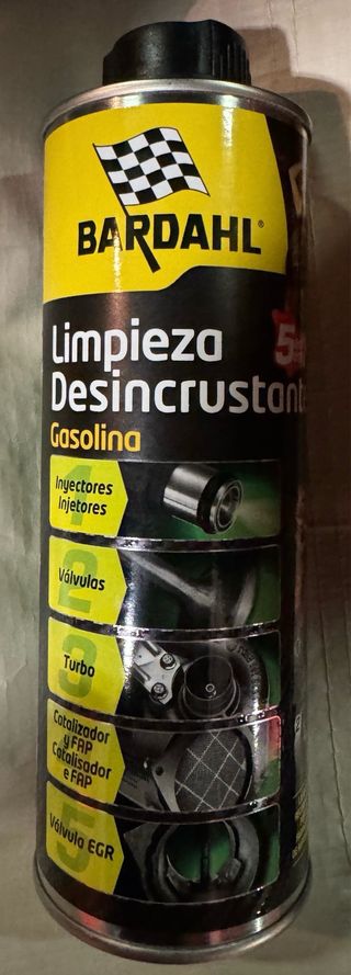 Limpiador desincrustante para motores de gasolina de la marca Bardahl. - Limpieza de inyectores. - Limpieza de válvulas. - Limpieza de turbo. - Limpieza de catalizador y FAP. - Limpieza de válvula EGR. Restaura el flujo del inyector, limpia y protege el Sistema de Inyección (inyectores y bomba). Limpia sin desmontar el Filtro de partículas, la válvula EGR, las válvulas de escape, el catalizador y el turbo. Previene el consumo excesivo de combustible. Restablece la potencia perdida. Evita la sustitución de piezas costosas. Limita las emisiones contaminantes y facilita el paso de la inspección técnica ITV. ***EN TIENDA 25€