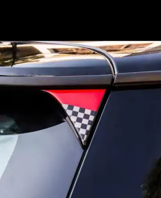 Detalle decorativo para la señal de giro de un Mini Cooper F56. Presenta un diseño llamativo con detalles en rojo y patrón de cuadros. - Diseño con patrón de cuadros. - Acabado en rojo.