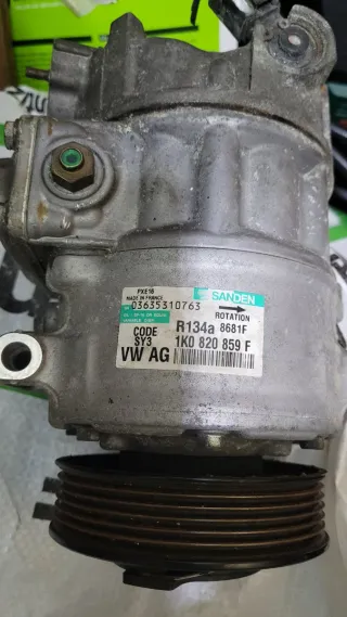 Compresor de aire acondicionado Sanden PXE16 para VW AG. - Modelo: PXE16 - Código: SY3 - Referencia VW: 1K0 820 859 F - Fabricado en Francia. - Gas refrigerante: R134a