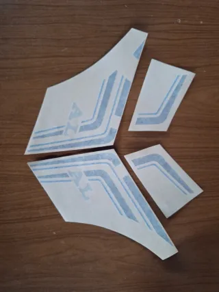 Set de adhesivos para Vespino AL. - Diseño con líneas azules. - Incluye varias piezas para personalizar la moto.