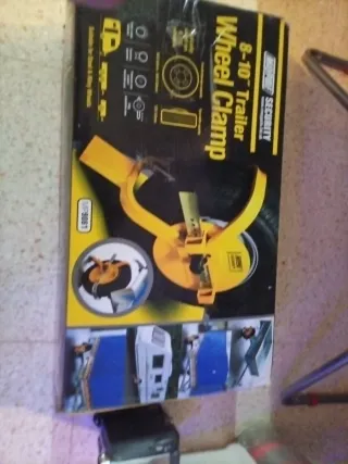 Protege tu remolque o caravana con este antirrobo de rueda. - Diseñado para ruedas de 8 a 10 pulgadas. - Fabricado en metal resistente. - Incluye dos llaves para el cierre.