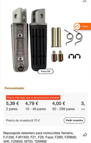 Estribos de repuesto para motocicletas Yamaha. - Fabricados en metal resistente. - Diseño plateado con goma negra. - Incluye herrajes para montaje.