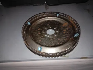 Volante motor de metal con engranaje perimetral. Incluye cuatro tornillos. - Diámetro interior del centro: 5 cm - Diámetro exterior: 28 cm - Altura: 2 cm