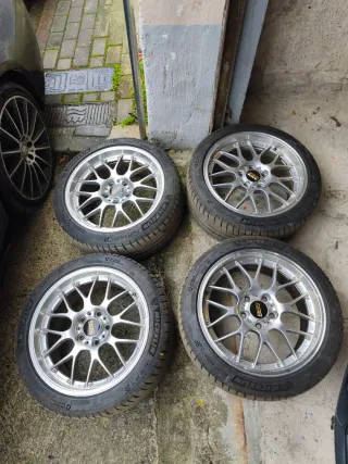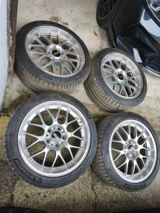 Juego de 4 llantas BBS RS GT originales 18x8.5 et38 Tornillería 5x120 de BMW Desmontables en dos piezas, no han sido desmontadas nunca. Montan neumáticos Michelin pilot sport en 245/40 r18 al 90% Una llanta tiene un roce de bordillo pero nada importante. Apreciable en las fotos.