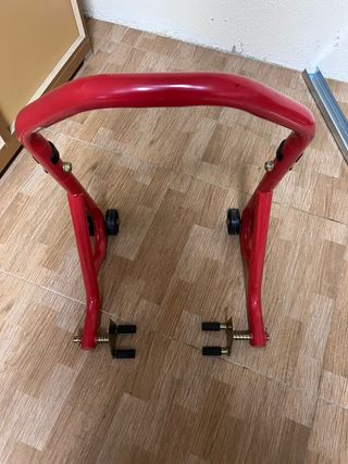 Se venden caballetes para moto, en color rojo. Son robustos nuevo solo lo he utilizado una vez - Fabricados en metal resistente. - Diseño práctico y fácil de usar. - Incorporan ruedas para facilitar el movimiento. No ago envío solo en mano