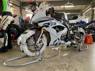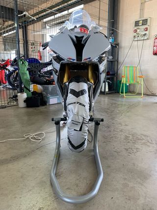 Pack de caballete para moto junto con dos suspensiones. Caballete con casquillo para atornillar junto con tornillo de suspension trasera y poder levantarlo . - Caballete con ruedas con luces 2 suspensiones como en las fotos la delantera preparada por matias racing