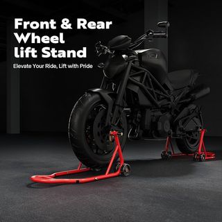 Uso Delantero y Trasero: Caballete 2-en-1. Incluye 2 estructuras distintas para uso Delantero o Trasero. Para todo tipo de motos (Carretera, Trail, custom, etc) gracias a sus múltiples accesorios incluídos. Incluyen los 3 tipos de anclaje (Basculante, Diábolos y Pin de horquilla) DESCUENTO: También disponible set de 2. Anuncio en mi perfil. Color ROJO.. Precio no negociable.