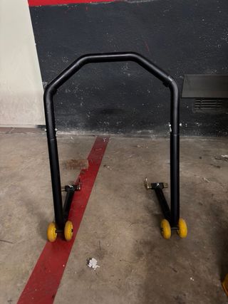 Caballete trasero para moto, ideal para mantenimiento. . - Permite elevar la moto de forma segura. - Dispone de ruedas para facilitar el movimiento. - Fabricado en metal resistente. - Incluye dos topes de goma. - precio negociable.
