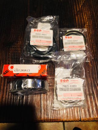 Conjunto de retenes y un rodamiento para Suzuki Samurai. - Retenes Suzuki: 09283-40027, 09283-48007, 29971-83050. - Rodamiento FAG: 6207.2RSR.C3.