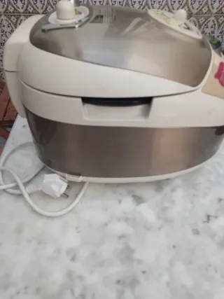 Olla programable Lady Gourmet en color blanco y negro. - Interior antiadherente. - Indicador de nivel máximo. - Botones de función: Cocinar, Calentar, Cancelar, Cocina Especial 1, Cocina Especial 2.