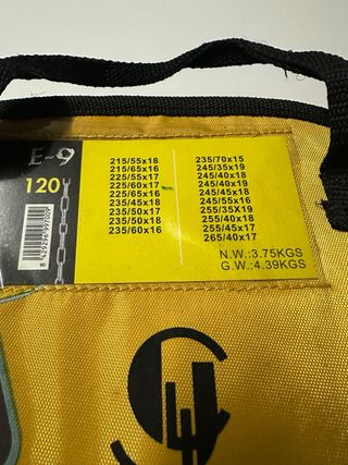 Cadenas para nieve E-300, nuevas a estrenar. - Tamaño 80. - Incluye lista de medidas compatibles: 165x15, 175x14, 175x15, 185/70x15, 195/70x14, 205/60x15, 225/50x15, 185/75x14, 195/75x14, 205/65x14, 225/55x14, 195/55x15, 200/60x16, 205/70x13, 185x13, 195/60x15, 205/50x16, 215/50x15, 185x14, 195/60x16, 205/50x17, 215/50x16, 185/60x17, 195/65x15, 205/55x15, 215/60x14. - Certificación TUV GS.