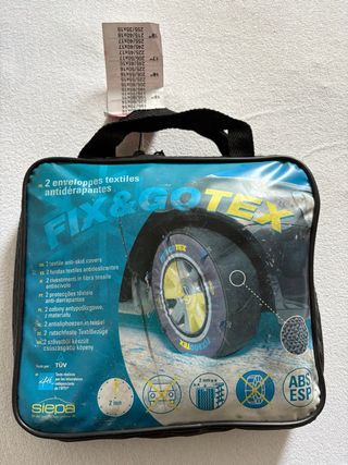 Cadenas de nieve textiles Fix&Gotex, fáciles y rápidas de montar. Ideales para nieve y hielo, sin dañar llantas ni suspensión. Alternativa ligera y silenciosa a las cadenas metálicas. ✅ Montaje sencillo (en pocos minutos) ✅ Compatibles con ABS y ESP ✅ No producen vibraciones ni ruidos ✅ Apta para vehículos con poco espacio entre rueda y paso de rueda ✅ Incluye bolsa de transporte Perfectas para llevar en el coche en invierno o para cumplir con la normativa en zonas de nieve. Estado: nuevo