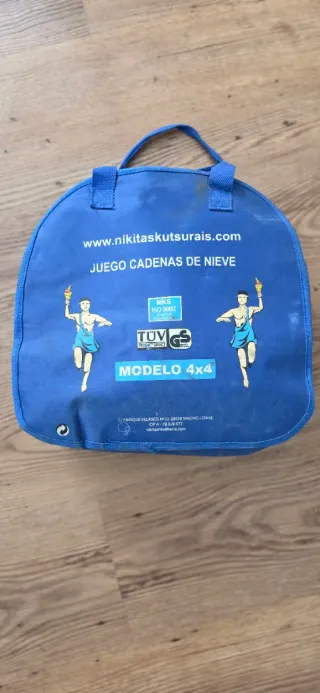 Cadenas para nieve, nunca utilizadas y en su caja original. - Incluye funda de almacenamiento. - Cadenas de metal con recubrimiento de goma azul y naranja. - Mecanismo de tensión con muelle.