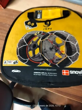 Cadenas para nieve de la marca JOPE, modelo E-9. - Certificación TUV GS. - Incluye bolsa de transporte. - Diseño de malla metálica. Para ruedas de 135 /70 a 175/60 No se han llegado a utilizar