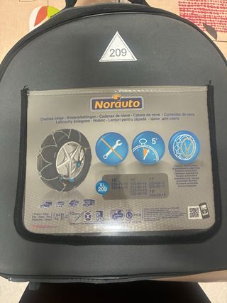 Cadenas para la nieve de la marca Norauto, modelo XL 209. - Compatibles con medidas de neumático: 235-70-15, 255-65-15, 235-65-17, 195-85-16, 215-80-16, 225-70-16, 255-60-16, 225-65-17, 235-55-17, 18, 235-55-18. - Grosor de la cadena: 12mm. - Incluye 2 cadenas (1 par). - Homologación PKW.
