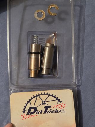 Tensor de cadena de distribución DirtTricks TC-3 para KTM. Incluye los componentes que se ven en las fotos. - Tensor de cadena. - Resortes. - Arandelas.
