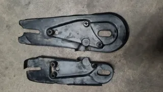 Cubre cadena para motocicleta Puch Suzuki Masi. Pieza de plástico negro. - Diseño curvo para proteger la cadena. - Incluye tornillos de sujeción.