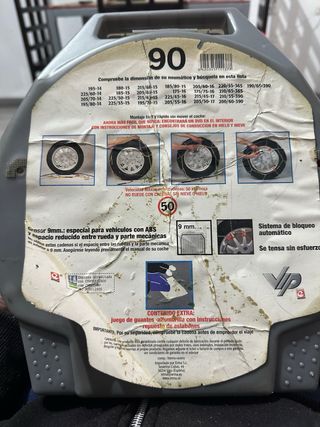 Cadenas para nieve marca ROMBOS, modelo 90. La caja se ve gastada por llevarla en el maletero, pero está sin abrir y las cadenas no se han usado nunca. - Incluye DVD con instrucciones y consejos. - Sistema de bloqueo automático. - Muelle tensor. - Grosor de 9mm, especial para vehículos con ABS y espacio reducido. - Homologadas por TUV GS.