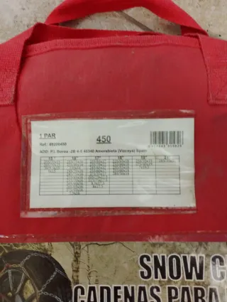 Cadenas para la nieve de la talla 450, ideales para vehículos 4x4. El paquete está sin estrenar. - Cadenas para nieve. - Talla 450. - Apto para 4x4. - Sin usar.