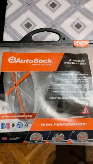 Cadenas de tela para la nieve de alto rendimiento de la marca AutoSock. - Ayuda de tracción para invierno. - Fácil de instalar y auto-centrante. - Mejora la tracción y el control en nieve y hielo. Estan nuevas no se han usado nunca