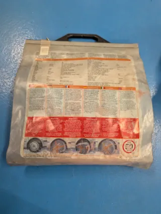 Fundas antideslizantes para nieve, su bolsa está desgastada pero las fundas están sin usar, no se han puesto nunca. Validas para varias medidas de neumático, desde 15" hasta 18" (se pueden ver en la etiqueta en una de las fotos)