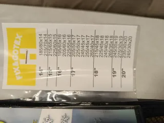 Funda textil para nieve y hielo. Valido para cualquier tipo de neumáticos dependiendo de la medida. Contiene guantes para su montaje. Sin estrenar. Abierto por primera vez para foto
