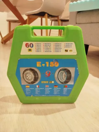 Cadenas para nieve JOPE E-150, modelo 60. - Incluye lista de medidas compatibles. - Caja de almacenamiento verde. - Fabricadas en metal. - Son antiguas pero no sé han usado NUNCA