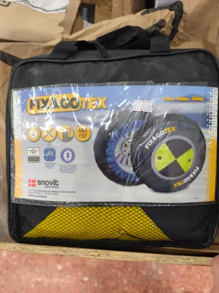 Cadenas textiles para nieve de la marca Snovit, modelo Fix & Gotex. Son una alternativa ligera y fácil de usar a las cadenas metálicas tradicionales. - Incluye bolsa de transporte. - Compatibles con ABS y ESP. - Homologadas por TÜV.